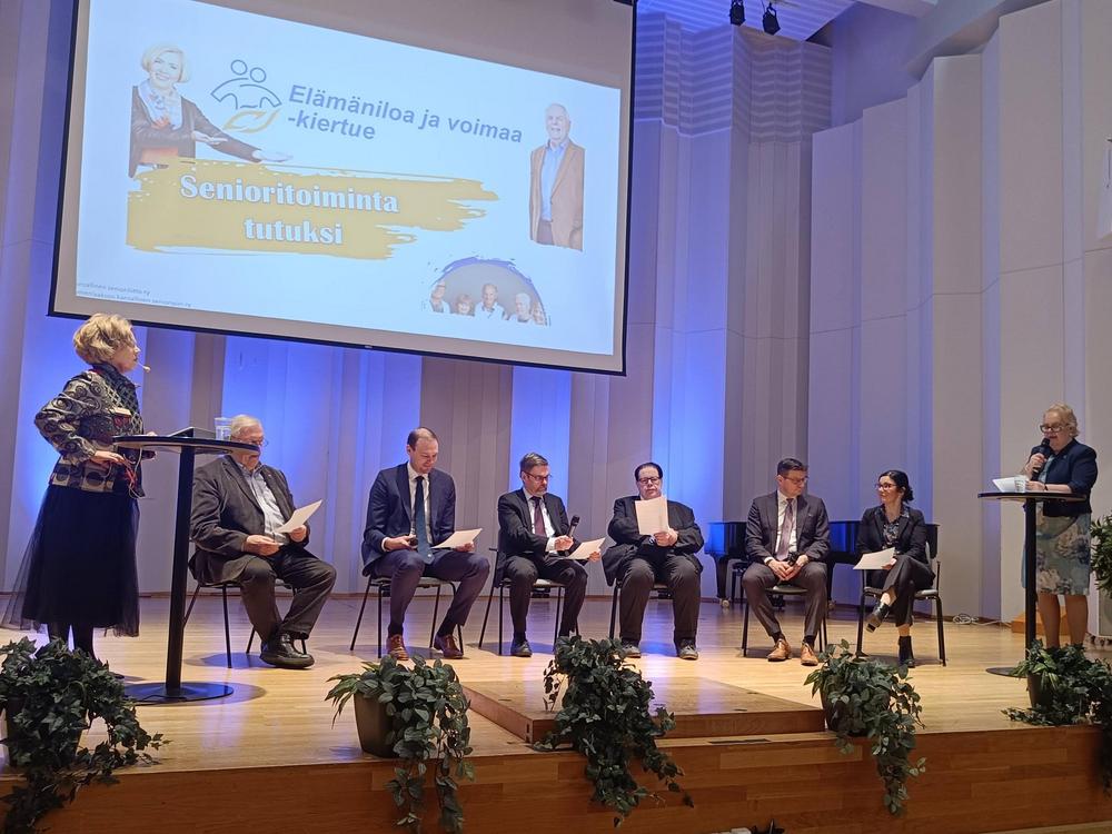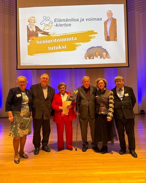 Kansallisen senioriliiton Elämäniloa ja voimaa -kiertue päättyi Kouvolan kaupungintalolla, missä tapahtuma kokosi yli 160 osallistujaa eri puolilta Kymenlaaksoa. Apulaiskaupunginjohtaja Tuukka Forsell ja Senioriliiton puheenjohtaja Kari Kantalainen toivottivat väen tervetulleeksi, ja asiantuntijapaneeli keskusteli ikäihmisten palveluista. Kotkan seniorit ry palkittiin Vuoden senioriyhdistyksenä, ja osallistujat tutustuivat järjestötoimintaan sekä paikallisiin palveluihin. Päivän päätteeksi taiteilijat Päivi Mäkinen ja Veli-Matti Friman johdattivat yleisön musiikin maailmaan. Kiitos kaikille osallistujille, puhujille ja järjestäjille – tapahtuma tarjosi tietoa, kohtaamisia ja iloa!